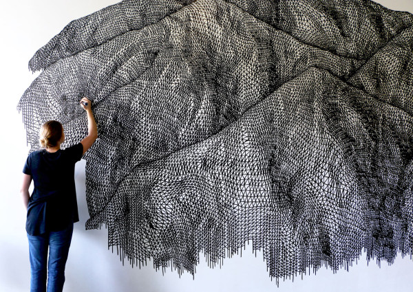 LA's artist @katyanngilmore is known for her amazing topographic artworks. She interested in the relationship between 2D, perpendicular planes and their distortions into 3D space.